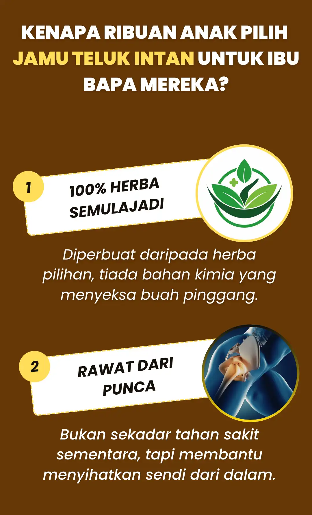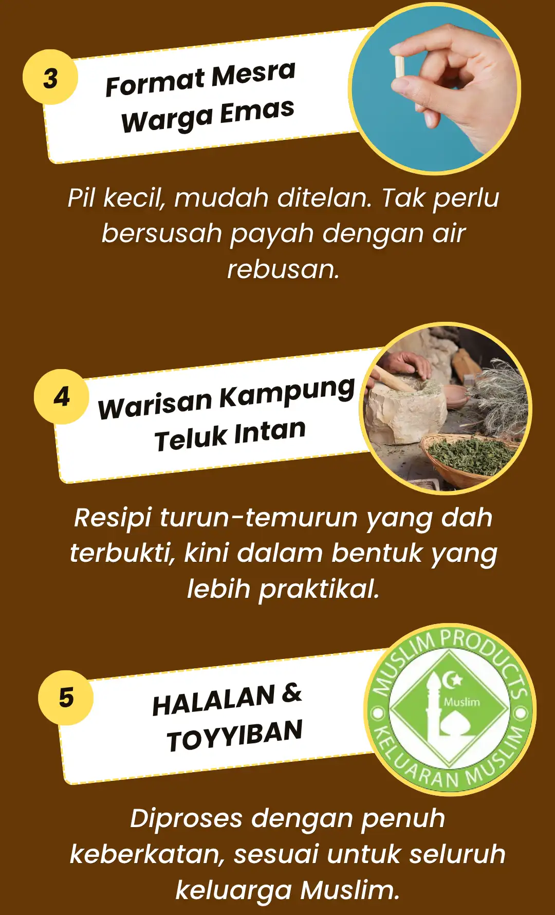 Jamu herba warisan Kampung Teluk Intan, Perak, yang telah diformulasi semula dalam bentuk pil moden, supaya senang dimakan oleh Mak Ayah kita.